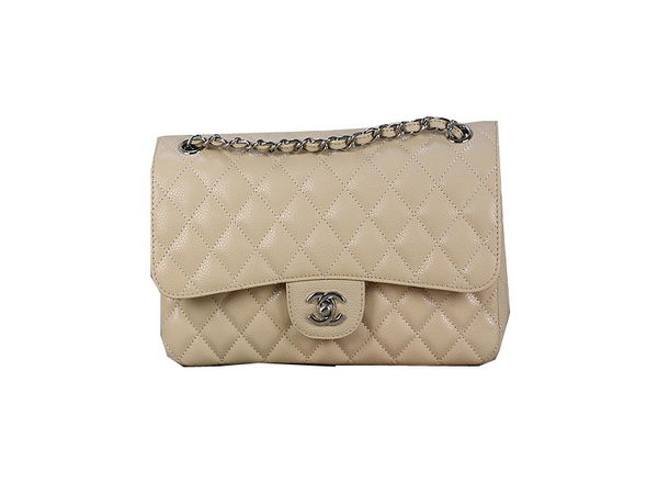 - Chanel 2.55 Series Classic Flap Bag 1112 Apricot Original Cannage Pattern Leather Silver