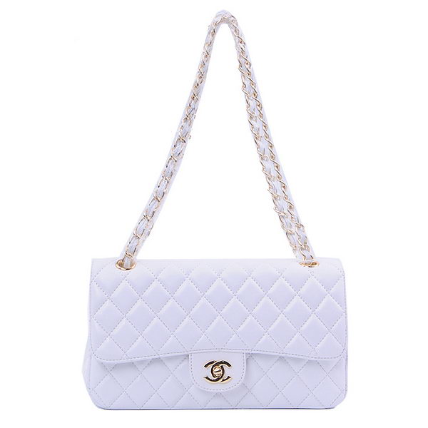 - Chanel 2.55 Series Classic Flap Bag 1112 White Sheepskin Gold