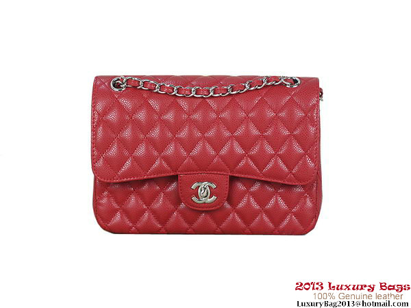 Chanel 2.55 Series Flap Bag Red Original Cannage Patterns Leather A1112 Silver
