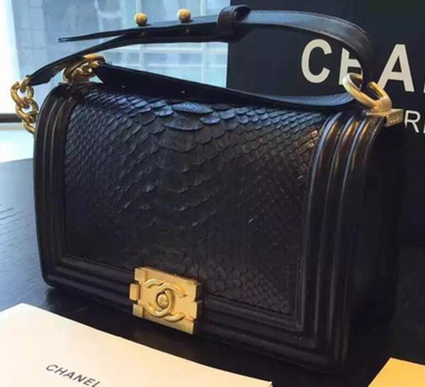 - Chanel Boy Flap Shoulder Bag Black Python Leather A66095 Gold