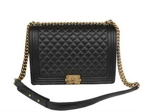 Home » Replica Handbags >> Chanel Handbag >> Chanel Le Boy » Chanel Boy Flap Shoulder Bag Original Black Sheepskin Leather A67087 Gold