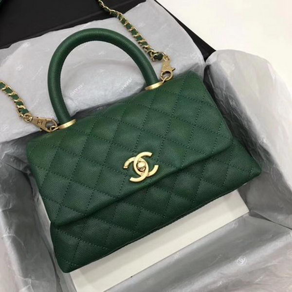 - Chanel original Caviar leather flap bag top handle A92290 green &gold-Tone Metal