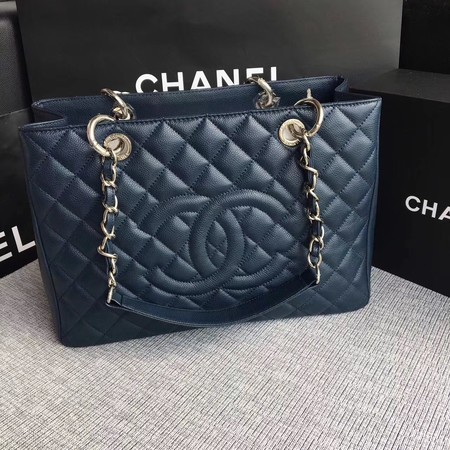 - Chanel LE Boy Grand Shopping Tote Bag GST Blue Cannage Pattern A50995 Silver