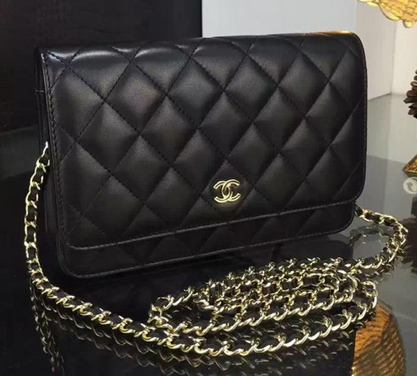 Home » Replica Handbags >> Chanel Handbag >> Chanel Flap Bags » Chanel WOC mini Flap Bag Black Sheepskin A5373 Gold