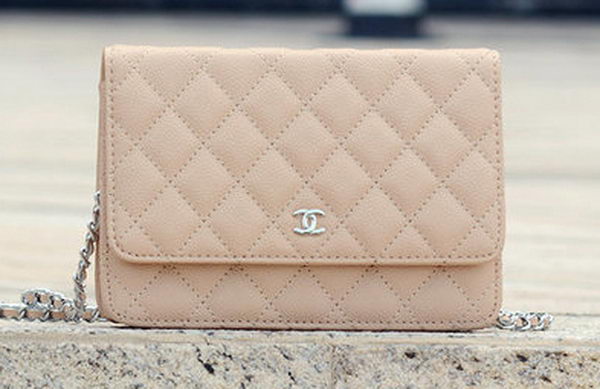 - Chanel WOC Flap Shoulder Bag Peach Calfskin Leather A33814 Silver