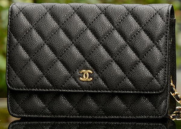 - Chanel WOC Flap Shoulder Bag Black Calfskin A33814 Gold