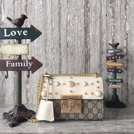 - Gucci Padlock Small GG Studded Shoulder Bag 432182 White