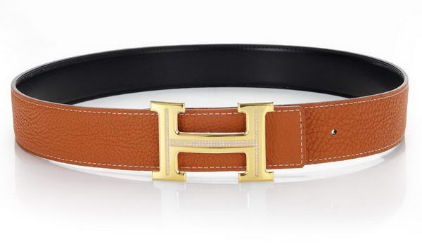 - Hermes Belts Original Leather Diamond Golden Orange