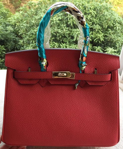 - Hermes Birkin 30CM Tote Bags Red Calfskin Leather BK30 Gold