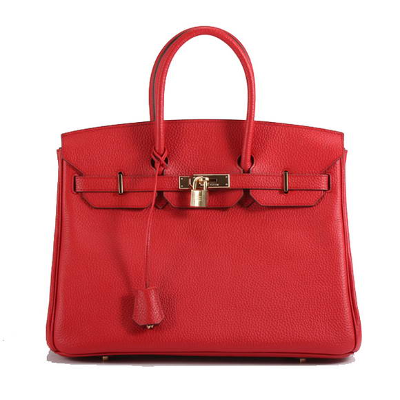 - Hermes Birkin 35CM Togo Leather Handbag 6089 Red Golden