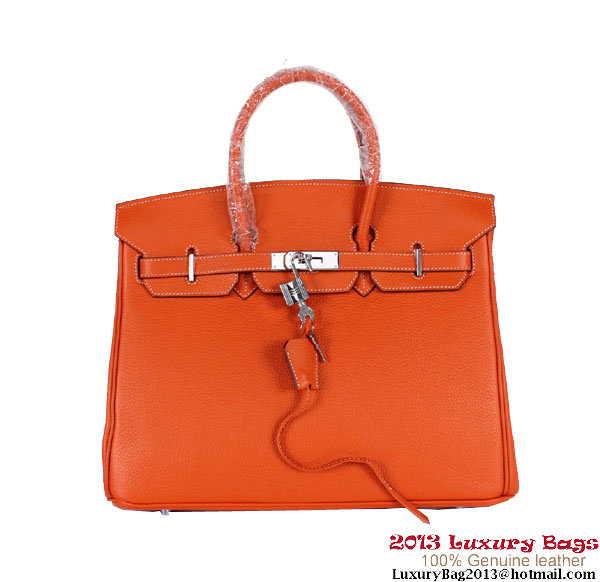 - Hermes Birkin 35CM Tote Bag Orange Clemence Leather H6089 Silver
