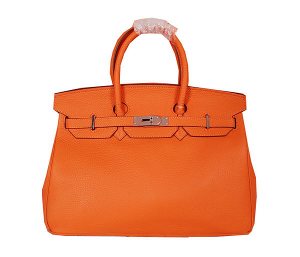 Home » Replica Handbags >> Hermes Handbag >> Hermes Birkin 35CM » Hermes Birkin 35CM Tote Bag Orange Original Grainy Leather H35 Silver