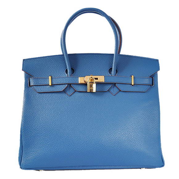 - Hermes Birkin 35CM Smooth Leather Handbag 6089 Blue Golden