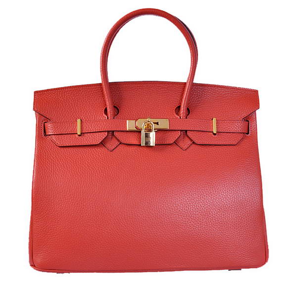 - Hermes Birkin 35CM Togo Leather Handbag 6089 Red Golden