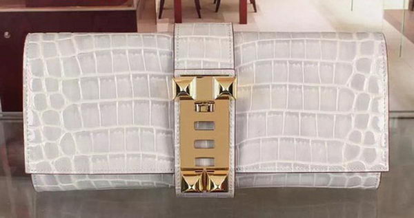 - Hermes Croco Leather Clutch H88017 OffWhite