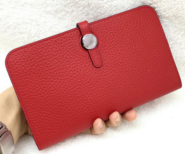 - Hermes Dogon Combined Wallet Litchi Leather A508 Red