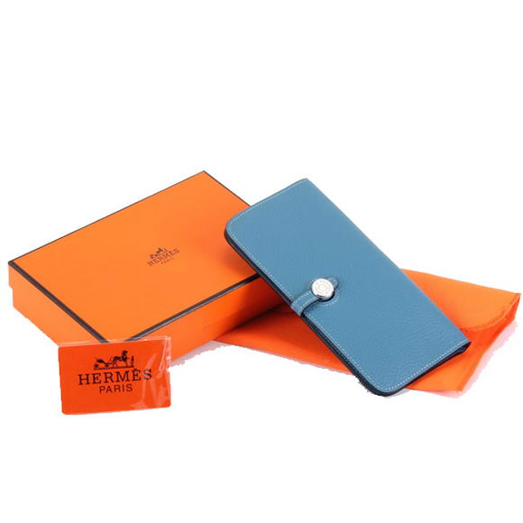 Hermes Dogon Togo Leather Wallet Travel Case A808 Blue