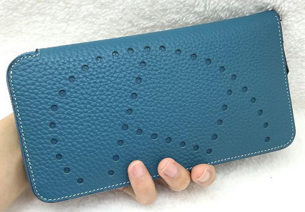- Hermes Evelyn Long Wallet Zip Purse A808 Blue