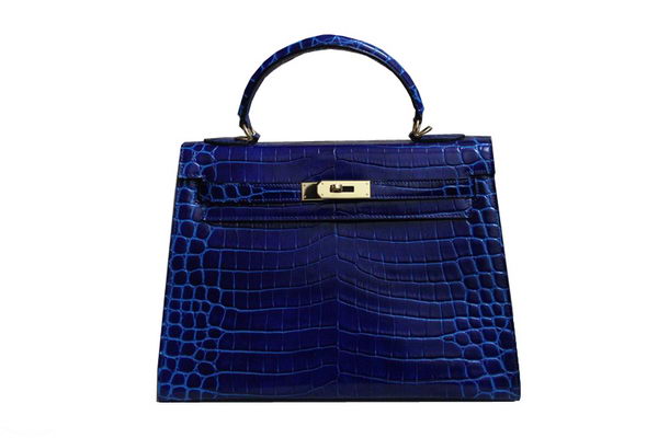 Home » Replica Handbags >> Hermes Handbag >> Hermes Kelly » Hermes Kelly 32cm Shoulder Bag Blue Croco Patent Leather K32 Silver