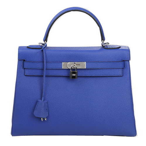 Home » Replica Handbags >> Hermes Handbag >> Hermes Kelly » Hermes Kelly 32cm Shoulder Bag Blue Original Leather K32 Silver