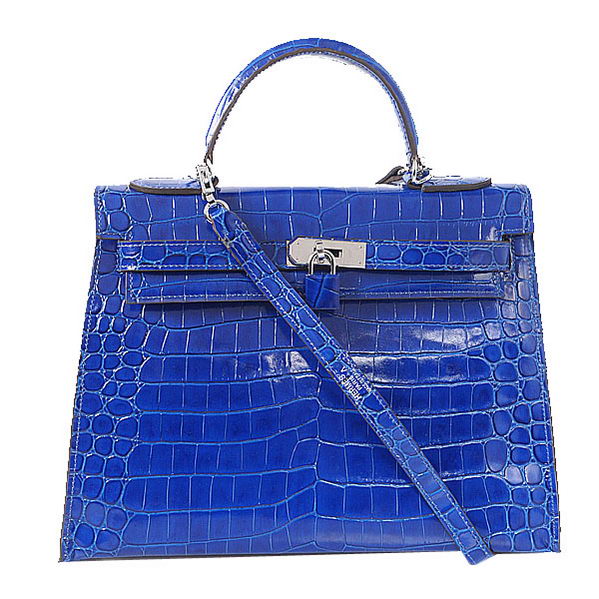 Home » Replica Handbags >> Hermes Handbag >> Hermes Kelly » Hermes Kelly 32cm Shoulder Bags Blue Iridescent Croco Leather Gold