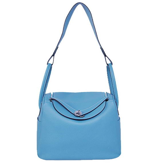 - Hermes Lindy 30CM Havanne Handbags 1057 Light Blue Leather Silver Hardware