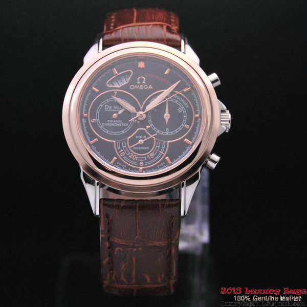 Home » Watches Online >> Omega Watches » OMEGA DE VILLE CO-AXIAL CHRONOSCOPE Red Gold on Brown Leather Strap OM77422