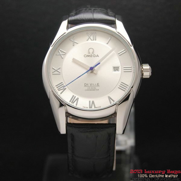 - OMEGA DE VILLE Co-AXIAL CHRONOMETER Steel on Black Leather Strap OM77004