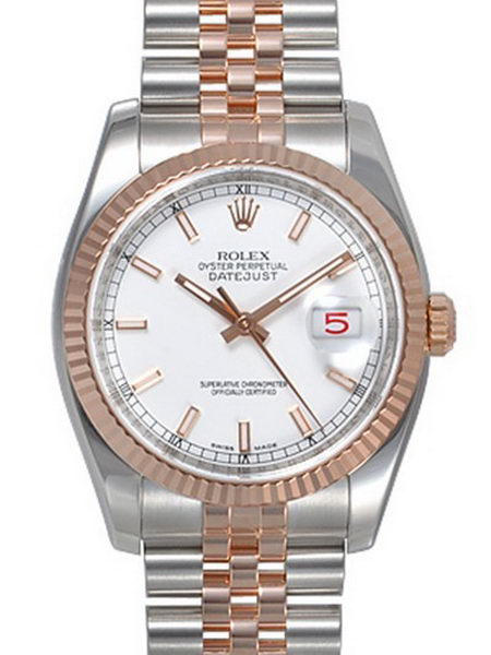 Watch crown: 18k rose gold plated stainless steel cutwork crown with Rolex logo